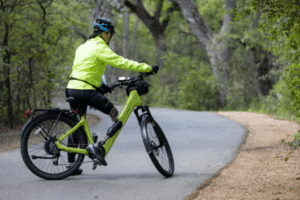 Σιγά-σιγά όμως, η ποδηλασία έγινε όλο και πιο δύσκολη. Ευτυχώς, ο Τζιμ ανακάλυψε το UrbanGlidePro της Vanpowers, ένα ηλεκτρικό ποδήλατο που είναι σχεδιασμένο σαν τα «γυναικεία» ποδήλατα: ο ποδηλάτης μπορεί εύκολα να ανέβει χωρίς να χρειάζεται να σηκώσει ψηλά το πόδι του, όπως στα «αντρικά» ποδήλατα. Το μοτέρ τον βοηθά να ανταπεξέλθει στις ανηφόρες, που δεν λείπουν στην μικρή πόλη της Καλιφόρνια όπου ζει. Και το έντονο κίτρινο χρώμα τον κάνει ορατό στον δρόμο – και ταιριάζει με το κίτρινο γιλέκο ασφαλείας που φοράει πάντα.